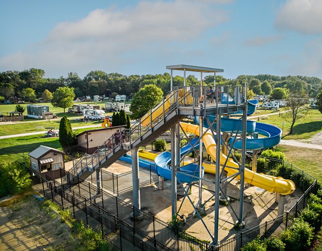 - O’Connell’s RV Campground – A destination in Amboy, Illinois, ideal for family fun, with amenities like pools, waterslides, and activities such as candy bar bingo.